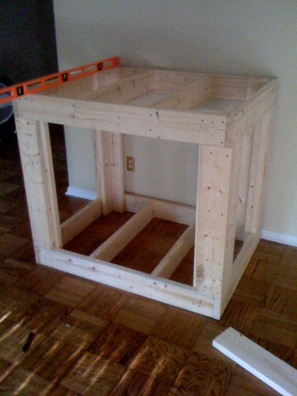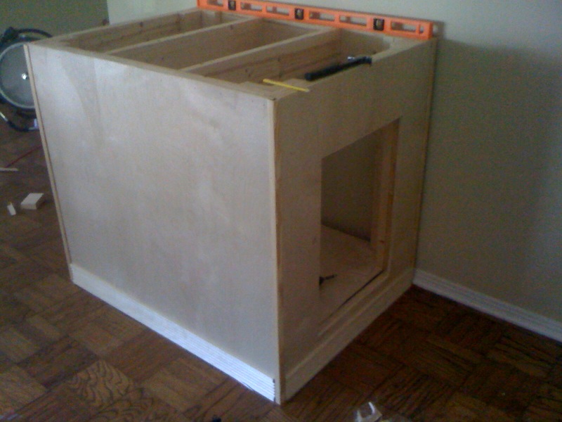 Sry for the poor pic quality. Cell phone pictures are always terrible, but better than nothing. I still have some work to do on the stand, I have to add a center brace to the front and back as well as wrap the stand and finish it. More pics to come. Here are a couple more shots of wrapping/finishing the stand. The only thing I have left is cutting the doors and placing the 3/4" piece on top. Can't wait!