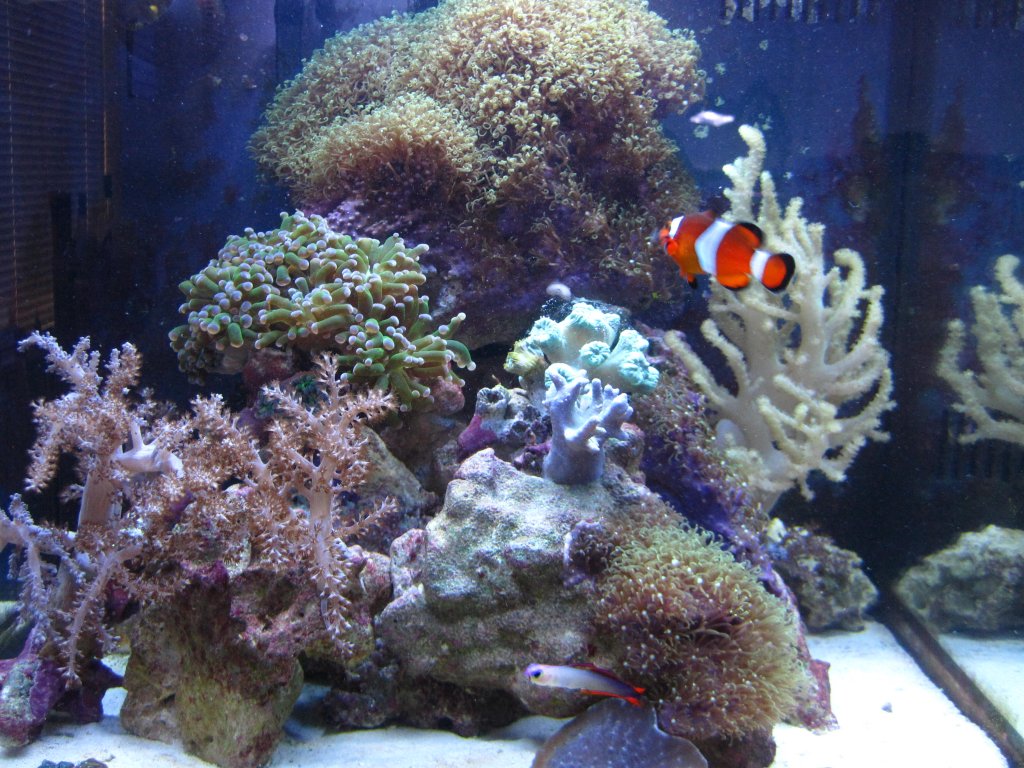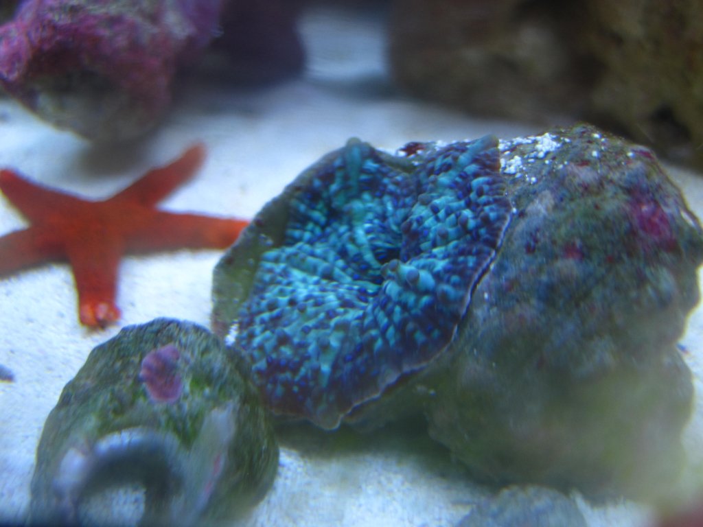 I have a 14g Biocube that is usually in my fiance's elementary classroom, but during the summer it comes home. There is a clown, royal gramma, purple firefish, red starfish, 2 sexy shrimp, crabs and snails. The bottom pic is a really cool mushroom I picked up at the LFS. I also wanted to share some recent pics of my 115g DT that is fishless due to a ich. I'm just going to let the parasite run through ...