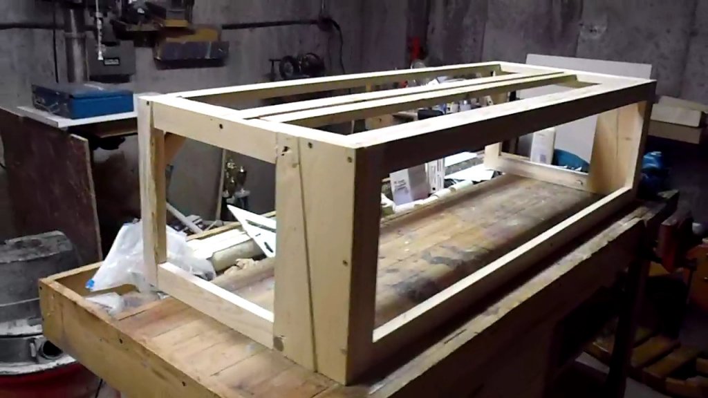 Finish covering the carcass with the pine stock. A coat of stain and two coats of satin poly. Clamp together and install the hinge. Voila! Did put a video on YouTube... search for "DIY Aquarium Canopy" (Use the quotes) Jim