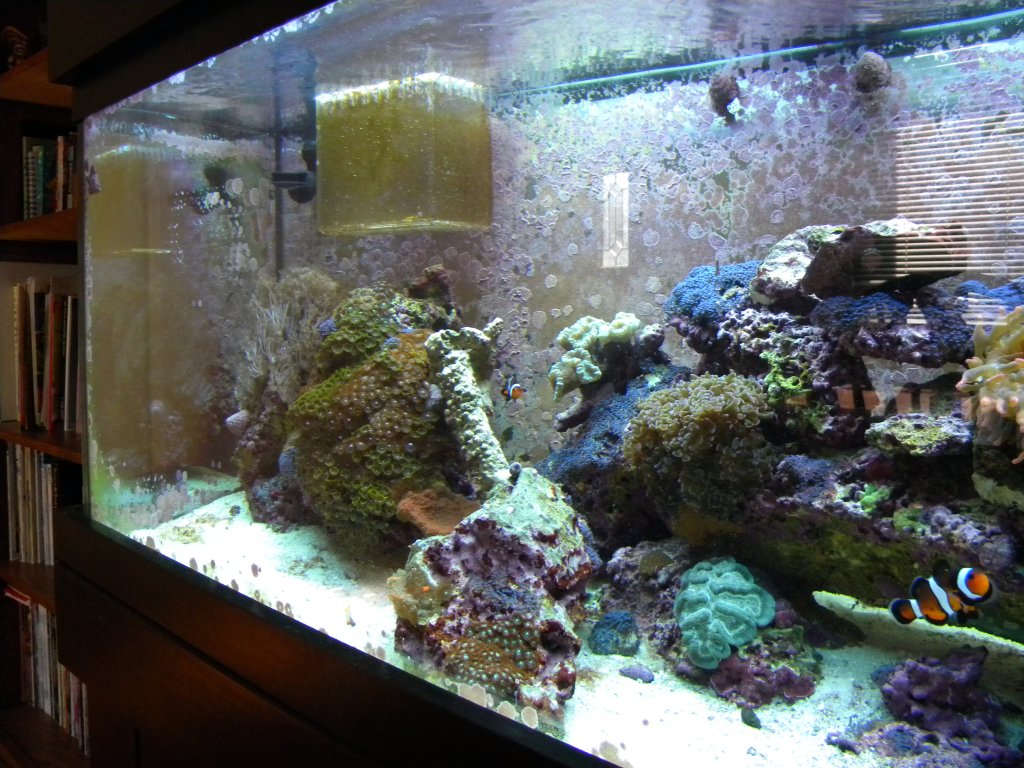 Well, I guess since this is my first entry I will tell a little about my tank. I started saltwater with a nano tank I acquired from a friend a little over a year and a half ago, it didn't take long to cycle since it was still used when i got a hold of it just far out of parameters. after about a two month cycling process I added a small CUC and a yellow tail damsel. One week later my first coral was added, a frag of green star polyps about the size of the tip of my pinkie finger, it had begun! soon ...