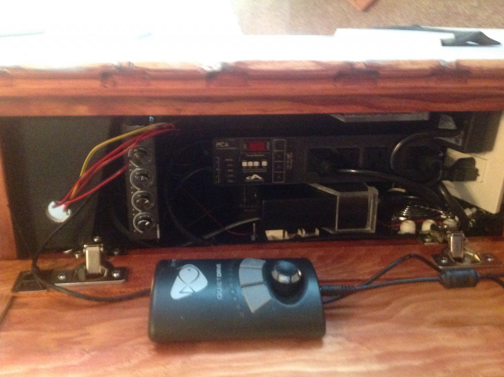 When I had the back cabinet off I decided to change up a few things including mounting the outlet boxes in the cabinet assembly instead of on the bottom outer frame assembly (first two photos). I also set them at a 15 degree angle to make it a little easier to plug things in and out. I kept tripping the GFI breaker with my fingers when it was mounted on the outer frame. The wires in the second photo going in the hole were placed there just to get them out of the way for the photo. These photos were ...
