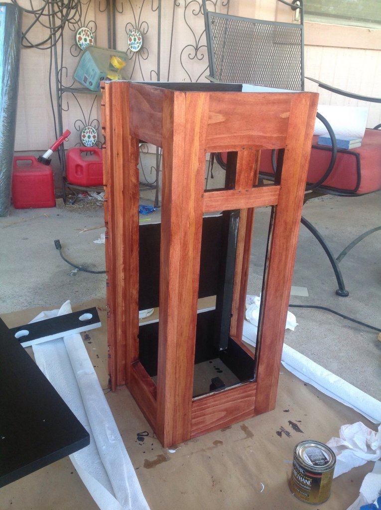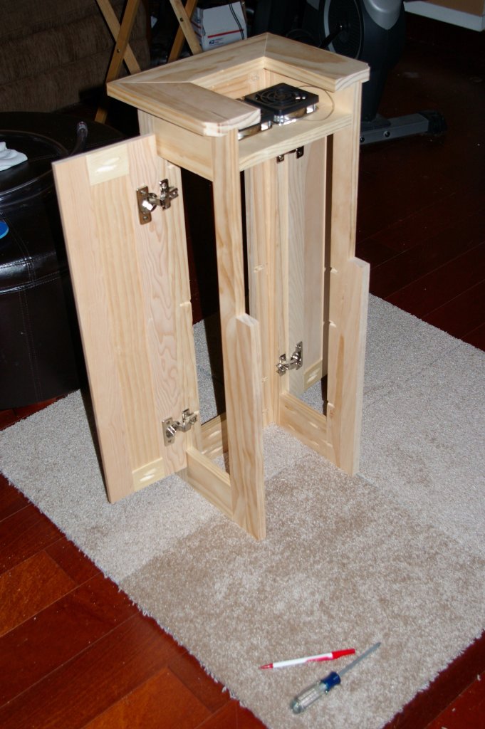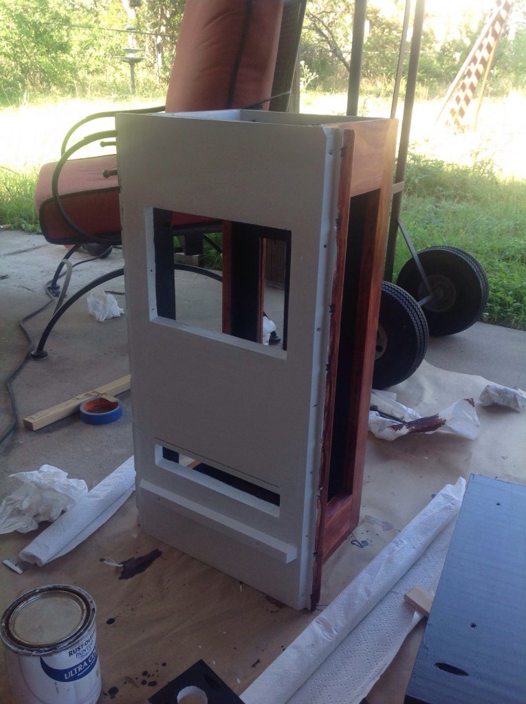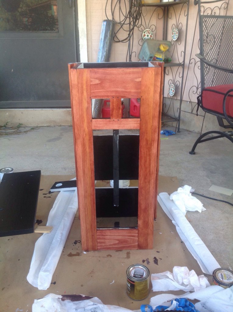 The first two photos are the parts of the sides to the back cover. The third photo is of the parts to the back of the back cover. This has been changed since the photo. It now has a solid back. I was going to put a panel in and decided that would not work water from spills that would get in the panel slots of the rails and stiles. I figured that would not be good in the long run and changed it. I don't have a photo of the parts for the back after the change. The forth photo is of the sides and back ...