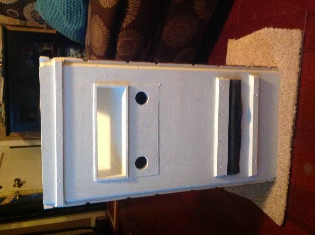 The first photo is of the center divider (for the cabinet attached to the back panel) and the bulkhead panel (for the conduit from the front electronics compartment in the stand). As with the other areas of this project the white painted areas is for the wet area and the black painted areas is for the electronics. The front electronics area is for the sensor modules and the back cabinet is for the power bars and various power supplies. The center divider has inserts to install up to two 4 channel ...