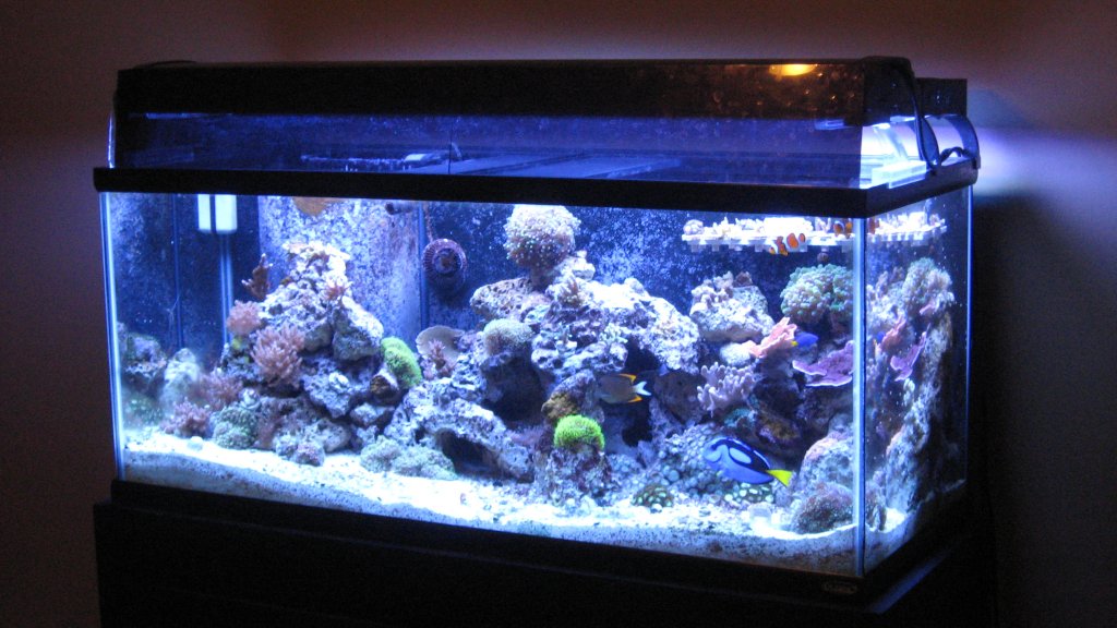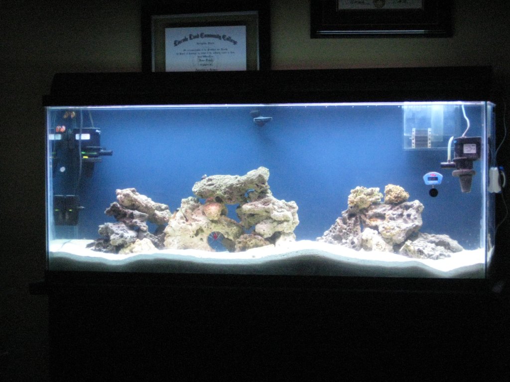 I had kept a 10 gallon freshwater tank for about 3 years, and decided to get a larger one. My brother told me about how cool his saltwater tank was while he was in college 20 years ago, and I decided to look into it. Meanwhile, my wife told me that instead of keeping the fish tank on the counter in the kictchen, that I ought to get a new one and put it in the art niche about 10 feet away. This was a nice spot, but was very central to the house. It would have to be done well, as it would be on display ...