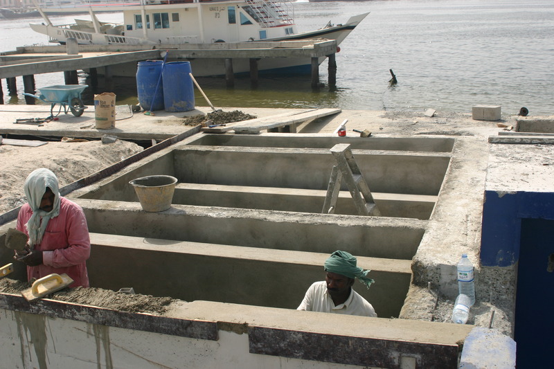 Nothing special here, the fish farm is a concrete container that the water overflows to from the aquarium and on its way to the sea. Due to the original wall damage, we had to sacrifice a lot of depth in the fish farm, nearly one meter so that we could fix it.