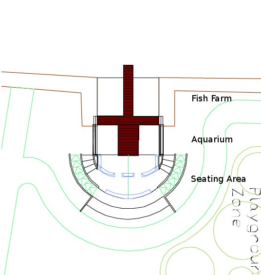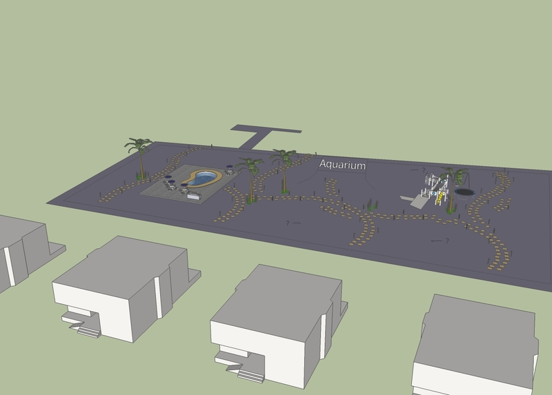 There is a large area surrounding the aquarium. The other two focal points of the area (what I call the backyard) is a swimming pool and a playground area. The designs are still in progress, but here is how this changed as well.