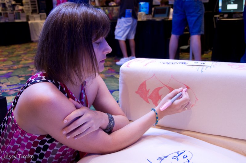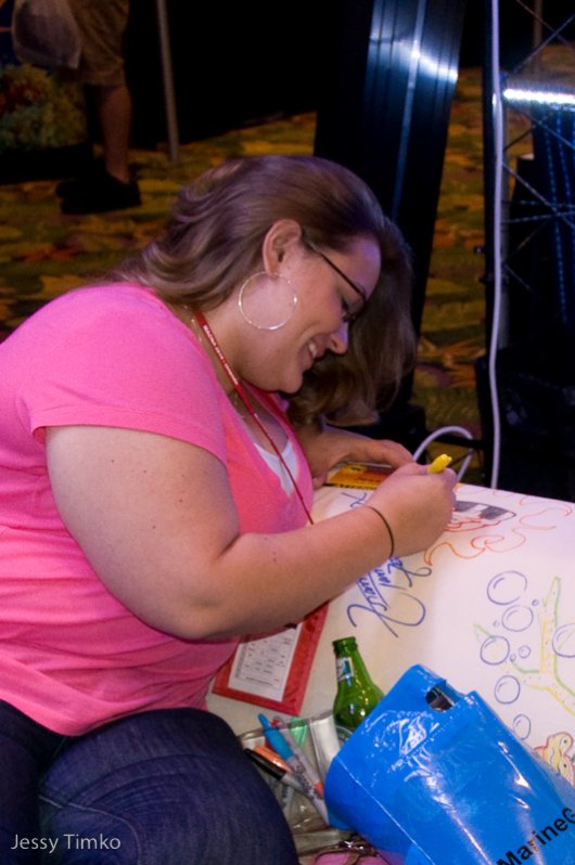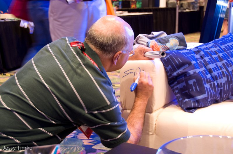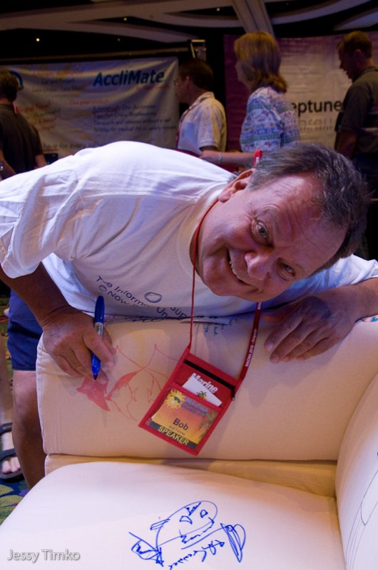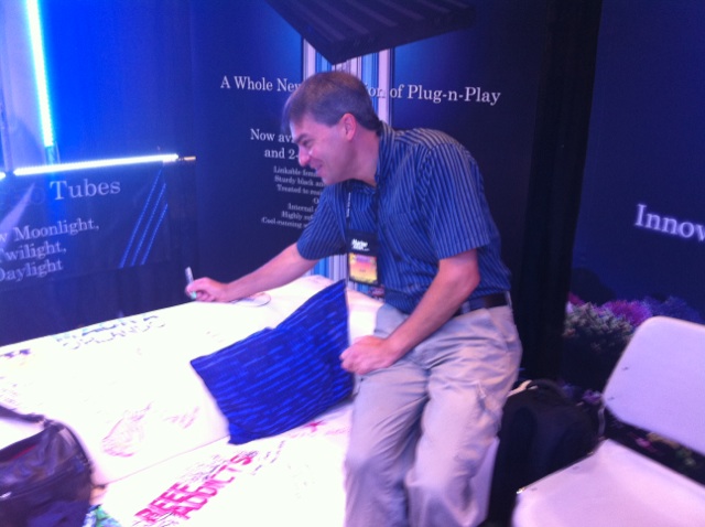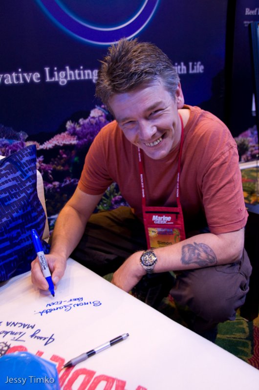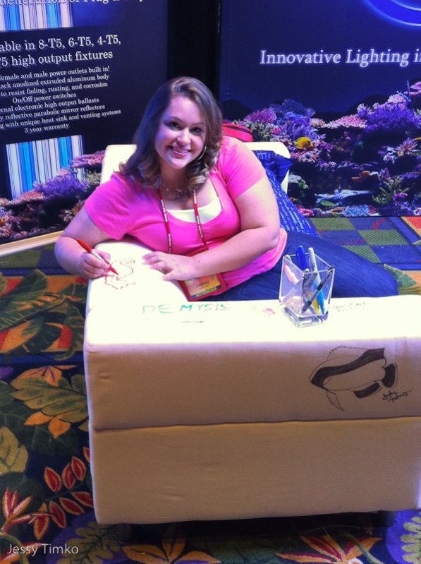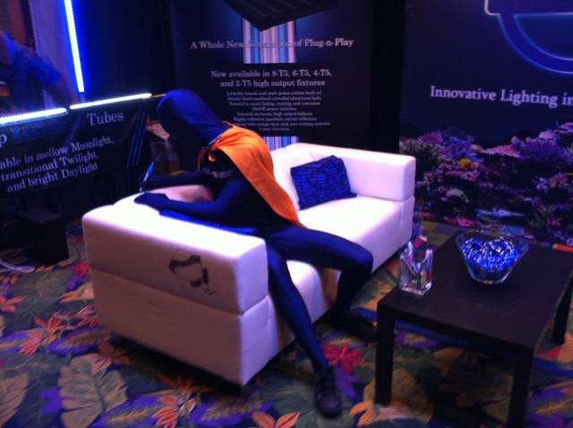 There were lots of great booths and designs at MACNA this year, but one of the ones that got the most buzz what IceCap's 20'x10' booth. Laura Birenbaum, (THE one and only hottie reefer'ette you always hear Marc and I refer to on the podcast) purchased a set of canvas covered couches from IKEA and supplied sharpies for speakers, sponsors, and VIP to sign during the show. Being the Reef Addicts supporter that she is, she let me tag the couch with a big ole' logo. The couch was a great idea both for memories and for marketing. Everyone had something to say about it, or wanted to know where they were going to go after the show. Last I heard, Laura was taking it home with her.