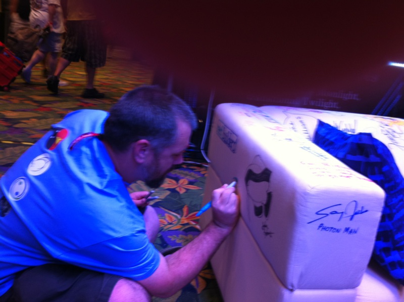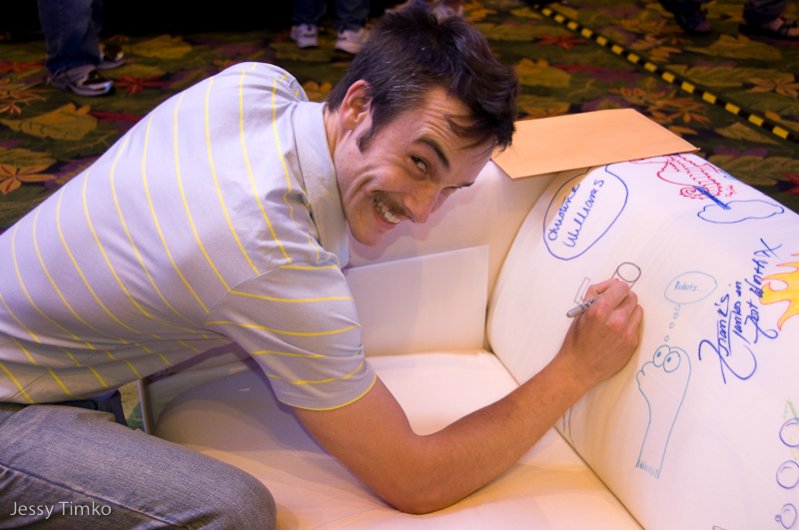 I drew a couple pieces of art on the couch. John from ORCA requested I draw the event logo on the couch so here you see the finished product.