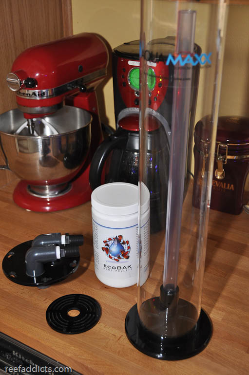 The reactor itself is made of acrylic and PVC fittings. The inlet and outlets are glued into place, which I personally don't like as it forces the hobbyist to plumb it specifically to its configuration. I'd rather have the freedom to run lines as they suit my needs, but I'm quibbling over a very minor design decision. The fittings use hose barb connectors, and I used two different sizes of flexible vinyl tubing to match that connection. If you'd prefer to hard plumb it, the hose barbs can be omitted, but you'll have to use unions with nipples to remove the reactor for maintenance.