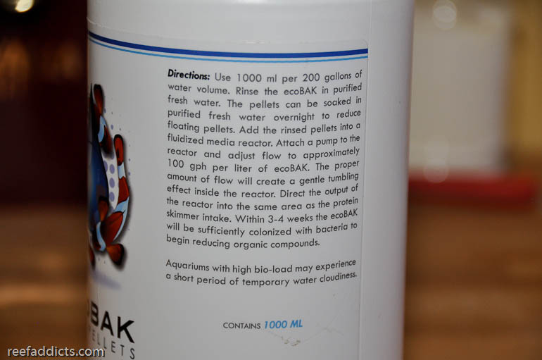 I've been running biopellets for 22 months, and used this brand for just over six months. I've read statements by others suggesting that you add a little media to the reactor at a time, rather than filling it up at once. That is not how consumers are directed with EcoBak media. It will take a few weeks for them to kick in, so give the process time before you begin to judge results. Biopellets aren't a quick cure for a problem, but can be the solution to maintaining better water quality longterm. EcoBak will help keep water quality in check, with the added perk of allowing you to feed more heavily. You will want to make sure your fish and corals are getting enough food, especially with this form of carbon dosing.