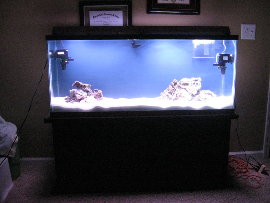 After countless hours on Craigslist searching for a suitable (i.e. cheap) tank I found a 55gal on sale for $30! I picked it up in the late evening from a couple who were moving away and needed to get rid of it in a hurry. I loaded it and the strip light into the back of my compact car and raced home to set it up in all of its scratched up glory! Now it was time to get serious..........