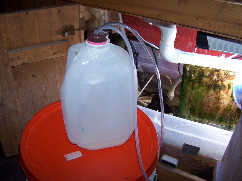 The next thing I considered was my sand bed. It was about 3 inches deep and had not been cleaned in about 2 years. I began to wonder if my sand could be holding impurities that were feeding my algae. I have read various opinions on deep sand beds versus shallow sand beds, and decided to remove much of this sand in an effort to reduce the food source. I carefully scooped out about 5 gallons of sand over the course of a week. I used a measuring cup and did my best not to disturb the sand around my working area.....I did not want to stir up a bunch of pollutants and make my problem worse. I also learned that rock and sand can absorb Phosphates and leach them back into the water at a later time. If I had been introducing Phosphates in my source water for the past 2 1/2 years, surely my sand had absorbed much of it. Step 2 complete.