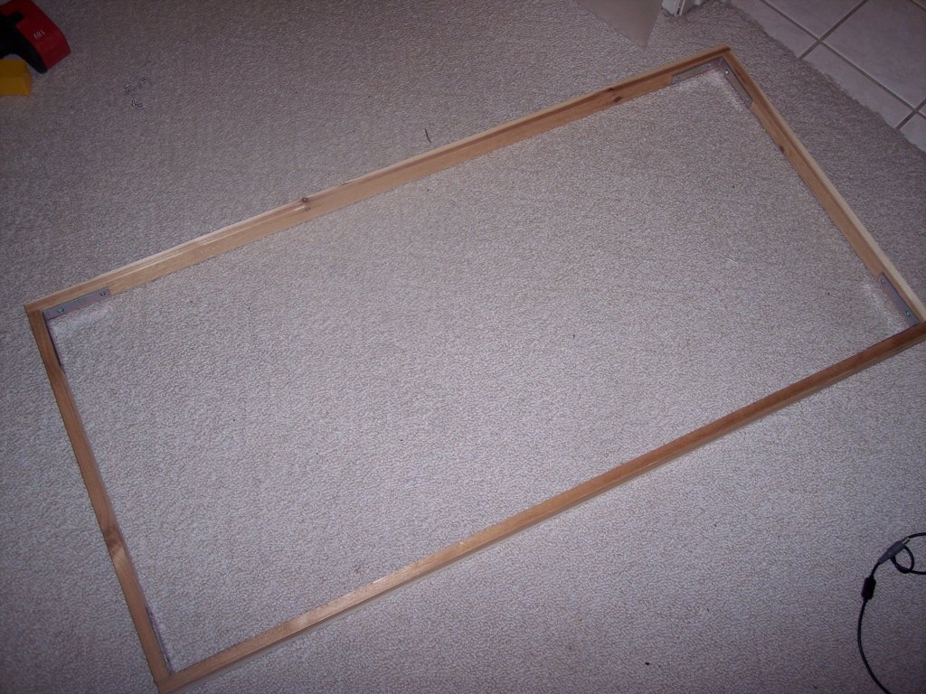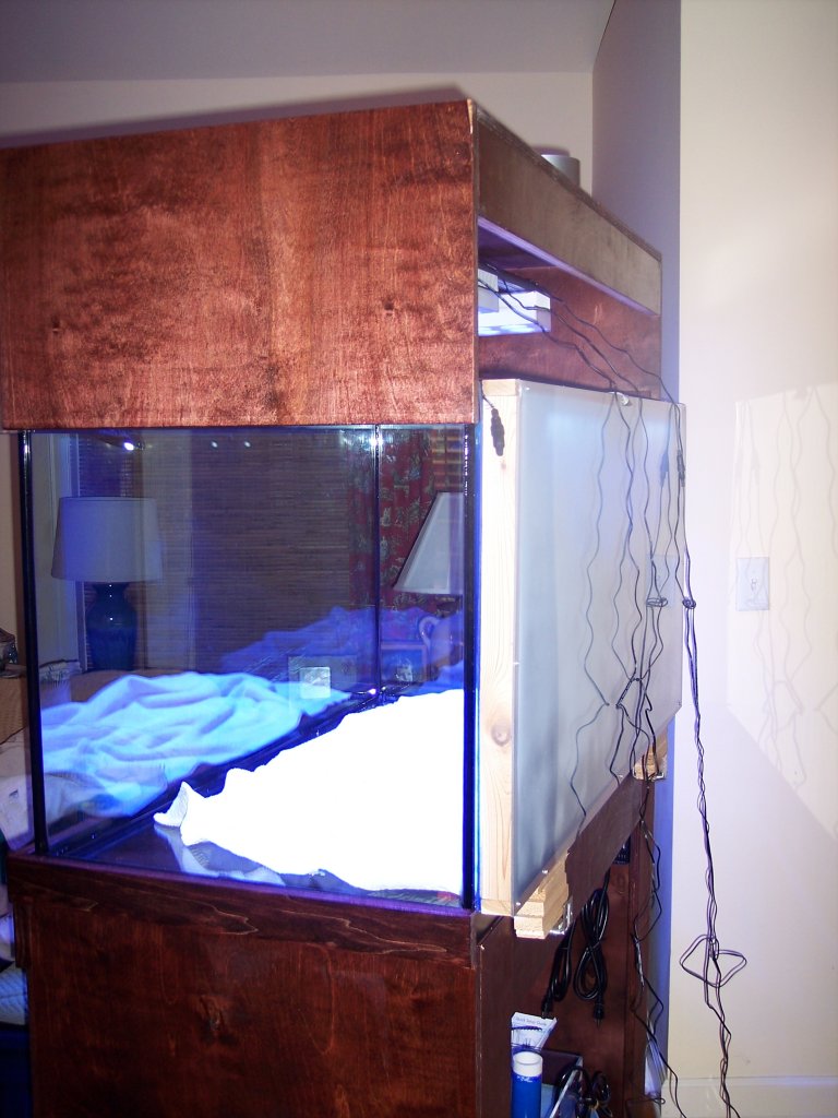 I made the frame a 2'x4' rectangle to match the size of the back of the tank. After the frame was built (corners secured with 'L' brackets), I added on the back sheet of acrylic which was frosted clear.