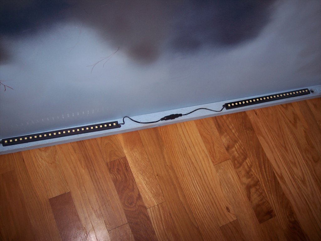 Here is kind of what it looks like. I have made a couple of changes since, and this doesn't show how good it actually looks due to me forgetting to adjust the white balance on my camera and getting too much blue in the picture. I will try to get a better picture of it on here so that you can see how it really looks in action. In reality, it is much more light sky blue and looks like the ocean. It is not royal blue like this picture came out.