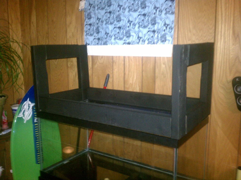in the mean time while the tanks cycling ill build me a hood from scratch im going to make it about 12 inches tall and make the whole top and front side lift up like the trunk of a car ill mount my lighing in the top and it will all lift up as one piece