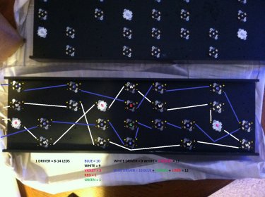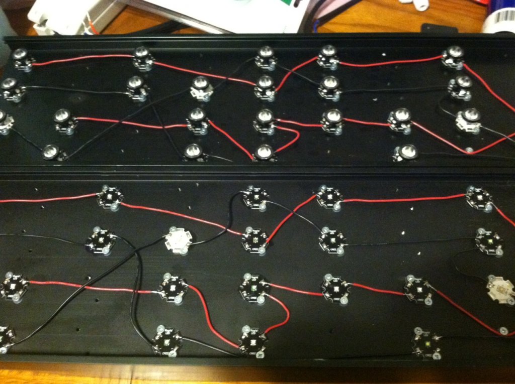 I spent Thanksgiving of course with family but I decided taking along my DIY dimmable kit from RapidLed.com would help keep me busy before eating and keep me awake afterward. after I got my LEDs mounted to the heat sink I took a picture and drew up this schematic for how I would run my wiring from LED to LED.