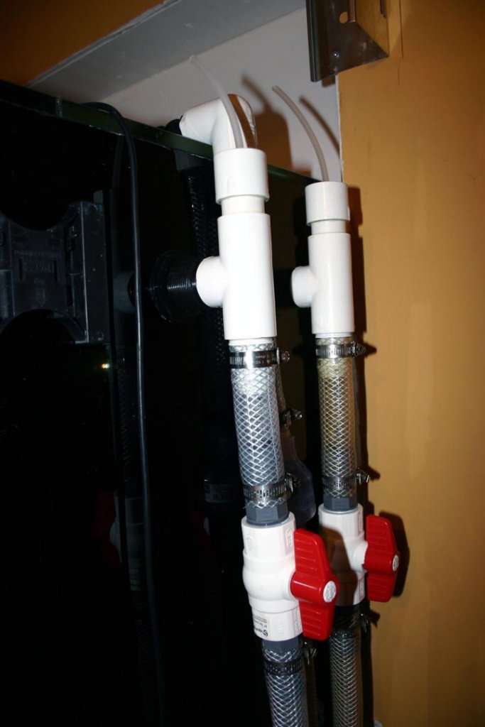 Here is the drain side. The drain lines were completely replaces with 1.5" pvc after this picture, but, the bulkheads and the elbows coming off the back are the same.