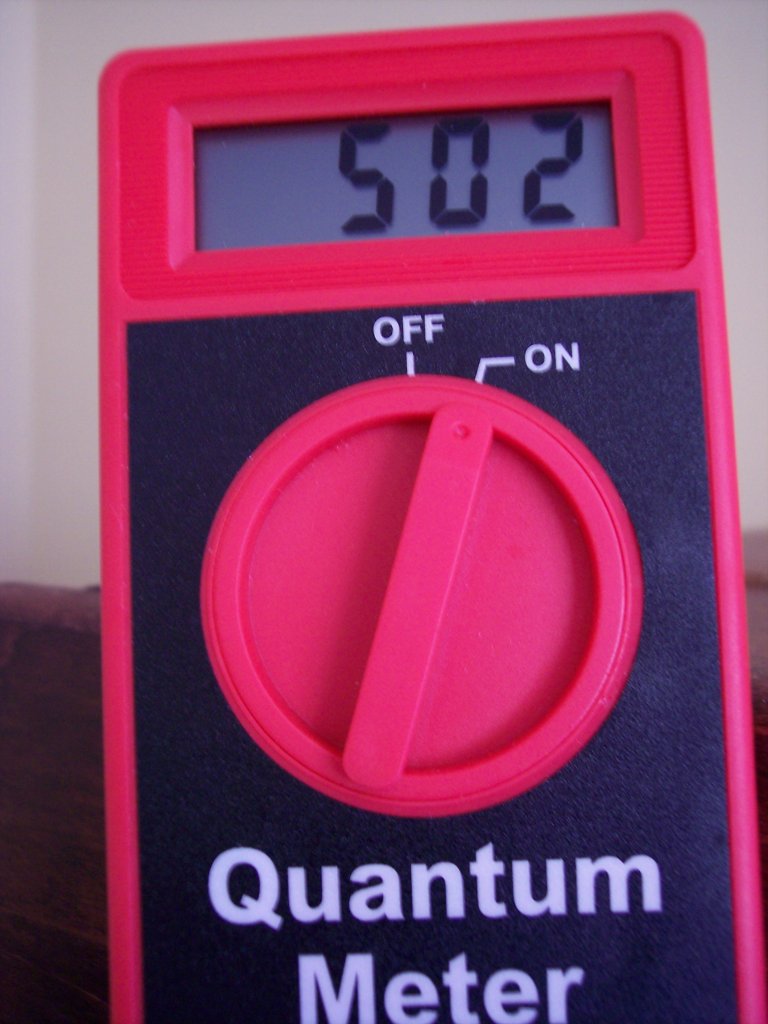 Here two Par Meter readings, one a 250w SE Radium 20K bulb in a Lumenarc reflector, on 250w Hamilton magnetic M80 ballast. The other is a 150w DE Phoenix 14K in a Hamilton Reefstar pendant (hammertone finish), on a IceCap 150w electronic ballast. Both were taken at the same distance, at the waters surface. Can you guess which is which?? LOL